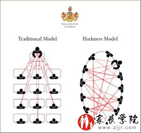 埃克塞特学院每一间教室都有一张醒目的“哈克尼斯”椭圆形木桌。上课时,学生和老师围坐在大桌子旁交流讨论。